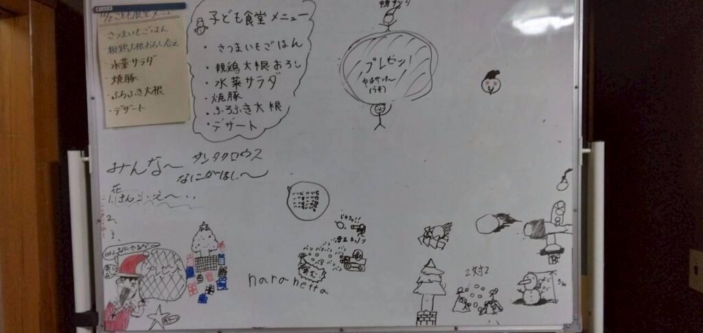 ◍こども達が毎回メニューを描いてくれるホワイトボードには、クリスマスへのワクワクが滲み出ています。