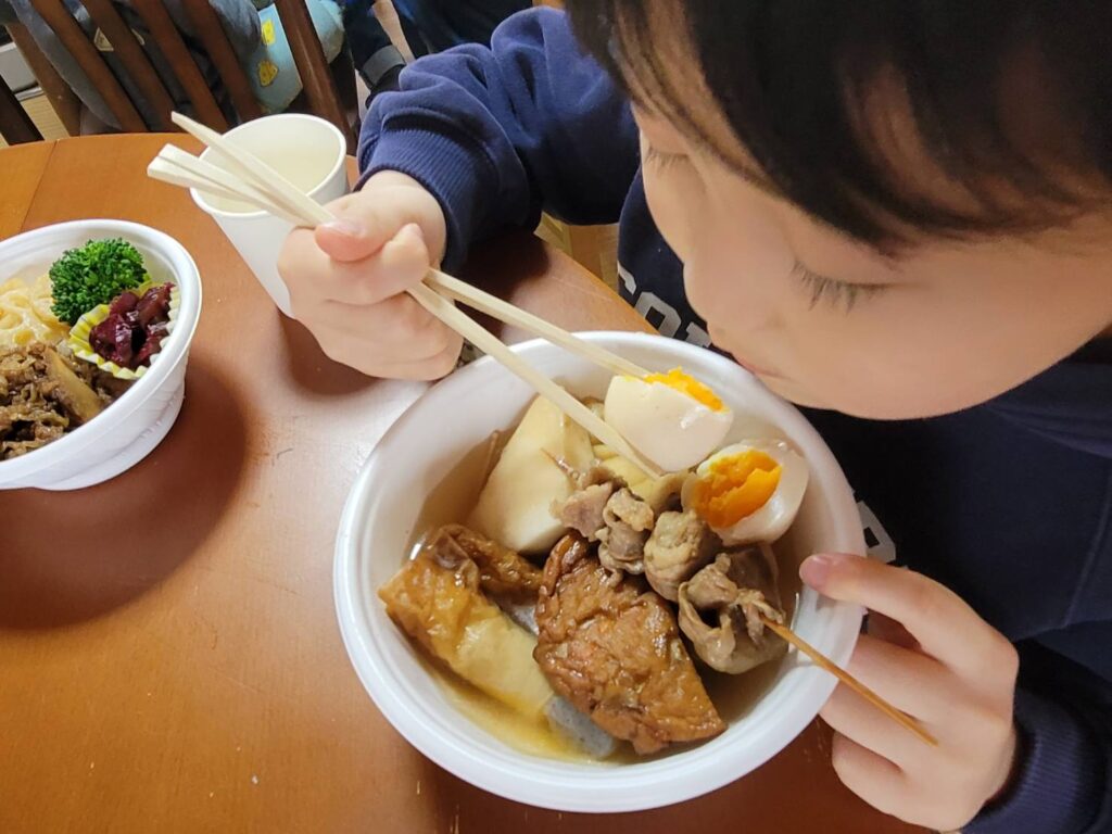 [こどもの居場所PJ]休日のこどもの居場所カフェを開催しました(1月18日) 2026年1月19日 最終更新日時 : 2026年3月15日 ぼらんたす 1月18日に、 休日のこどもの居場所カフェを開催しました。 《今回のメニュー》 ・おでん ・牛肉のしぐれ煮丼 具だくさん、あつあつのおでんをみんなで食べました。 (iwanami)