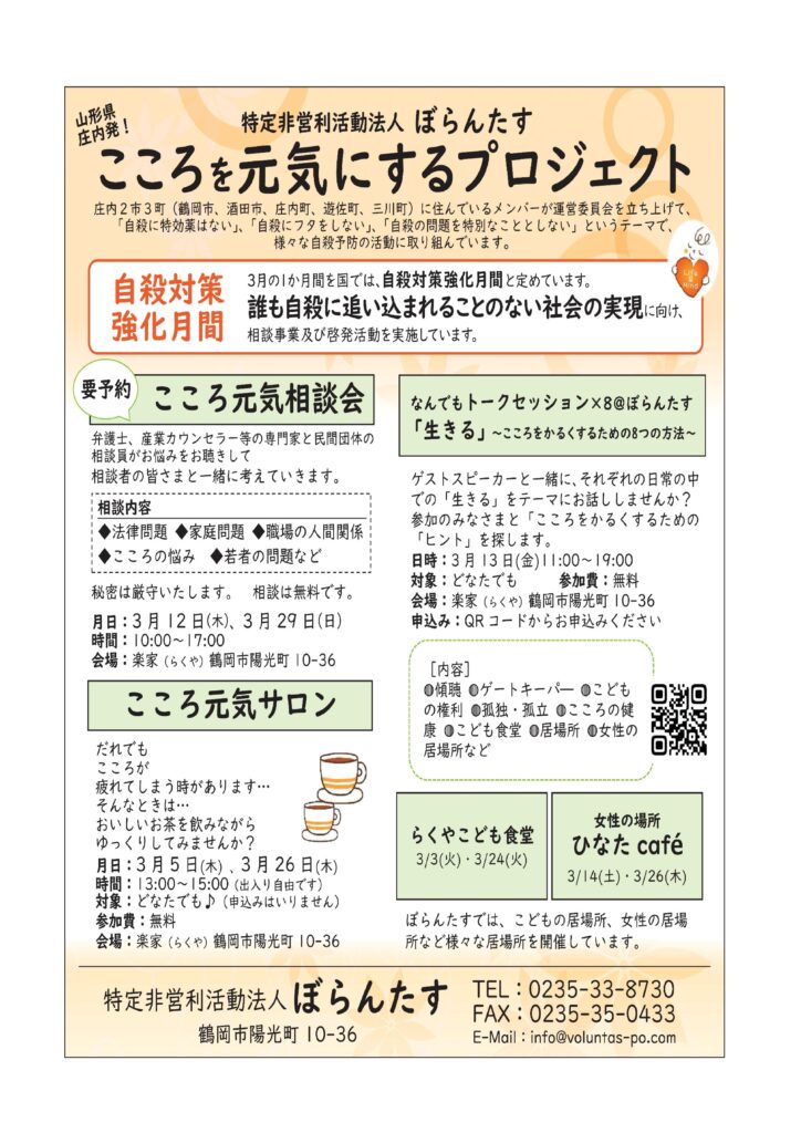 *3月の「自殺対策強化月間」のプログラムとして今年も開催します