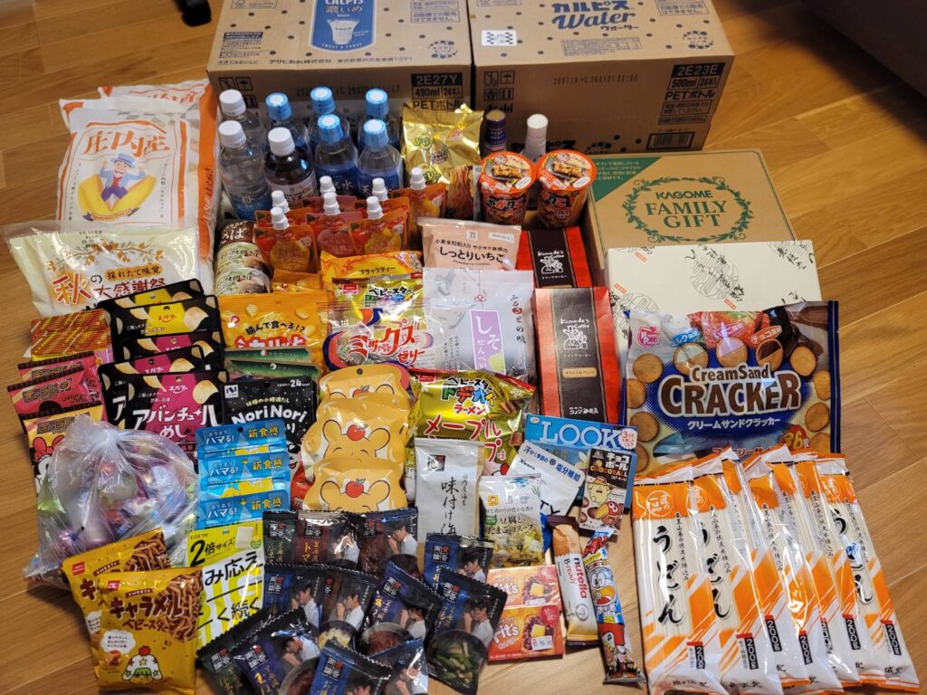 お米や飲み物、お菓子等